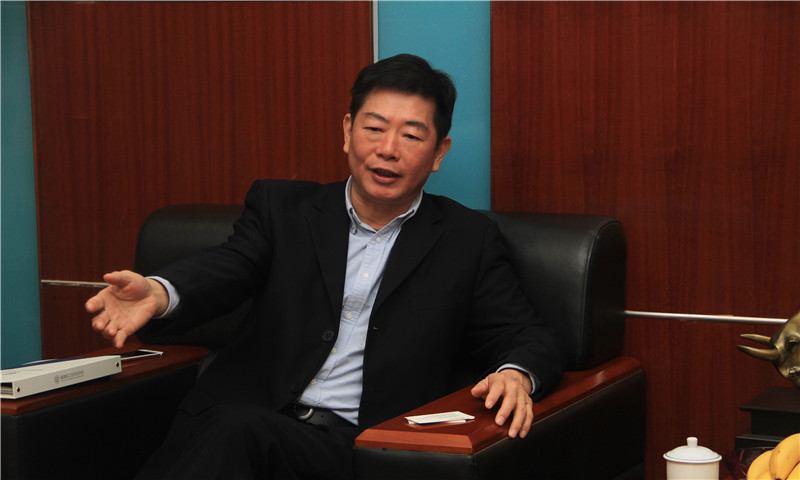 图为万宝能源董事长吴永文介绍企业产品特点
