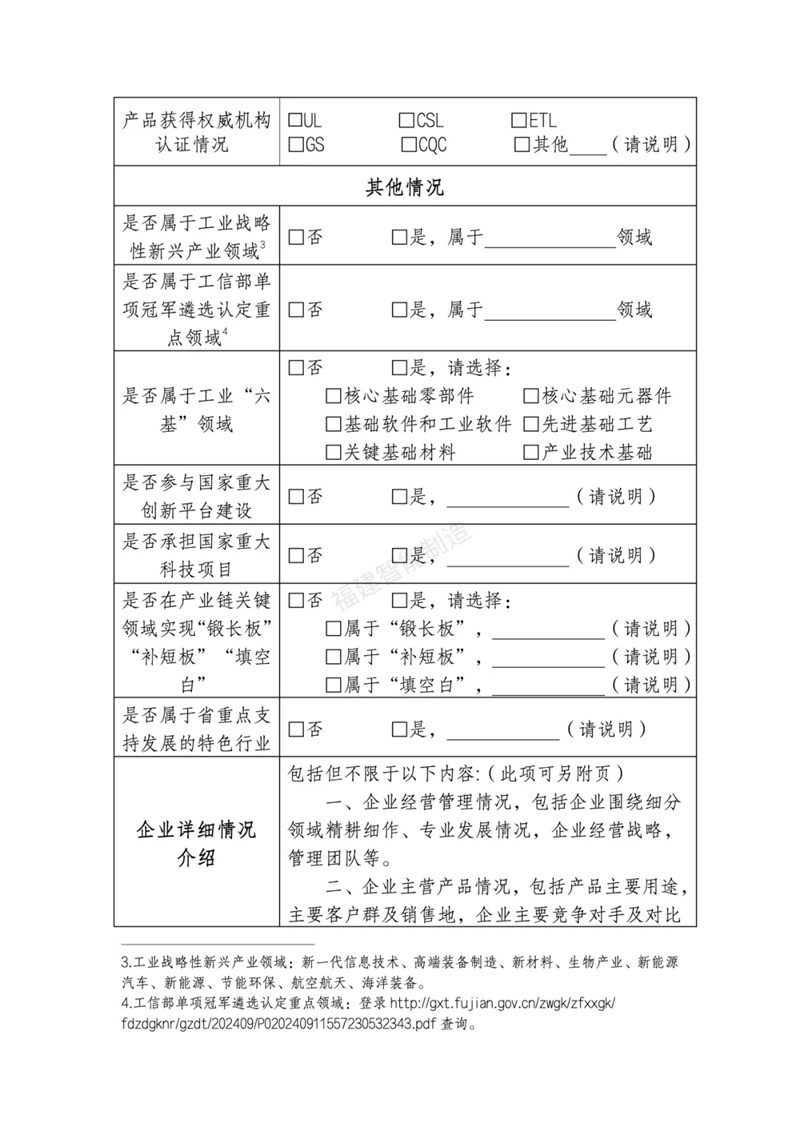 1.福建省制造业单项冠军企业申报书