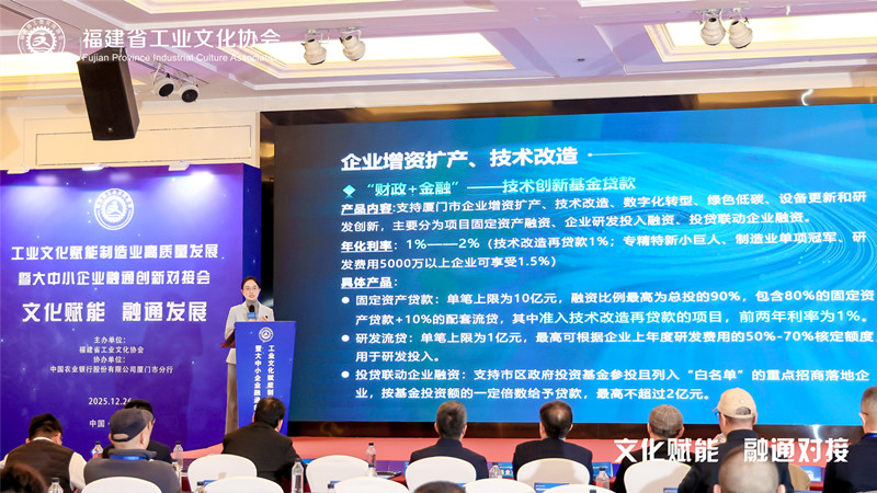 12月26日下午,由华体会官方网页版-华体会(中国) 主办、中国农业银行股份有限公司厦门市分行协办的“工业文化赋能制造业高质量发展暨大中小企业融通创新对接会”在厦门成功举办。