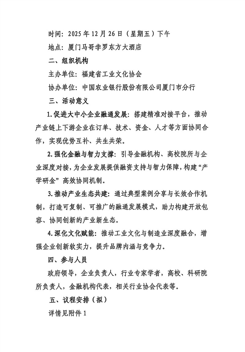 关于举办工业文化赋能制造业高质量发展 暨大中小企业融通创新对接会的通知