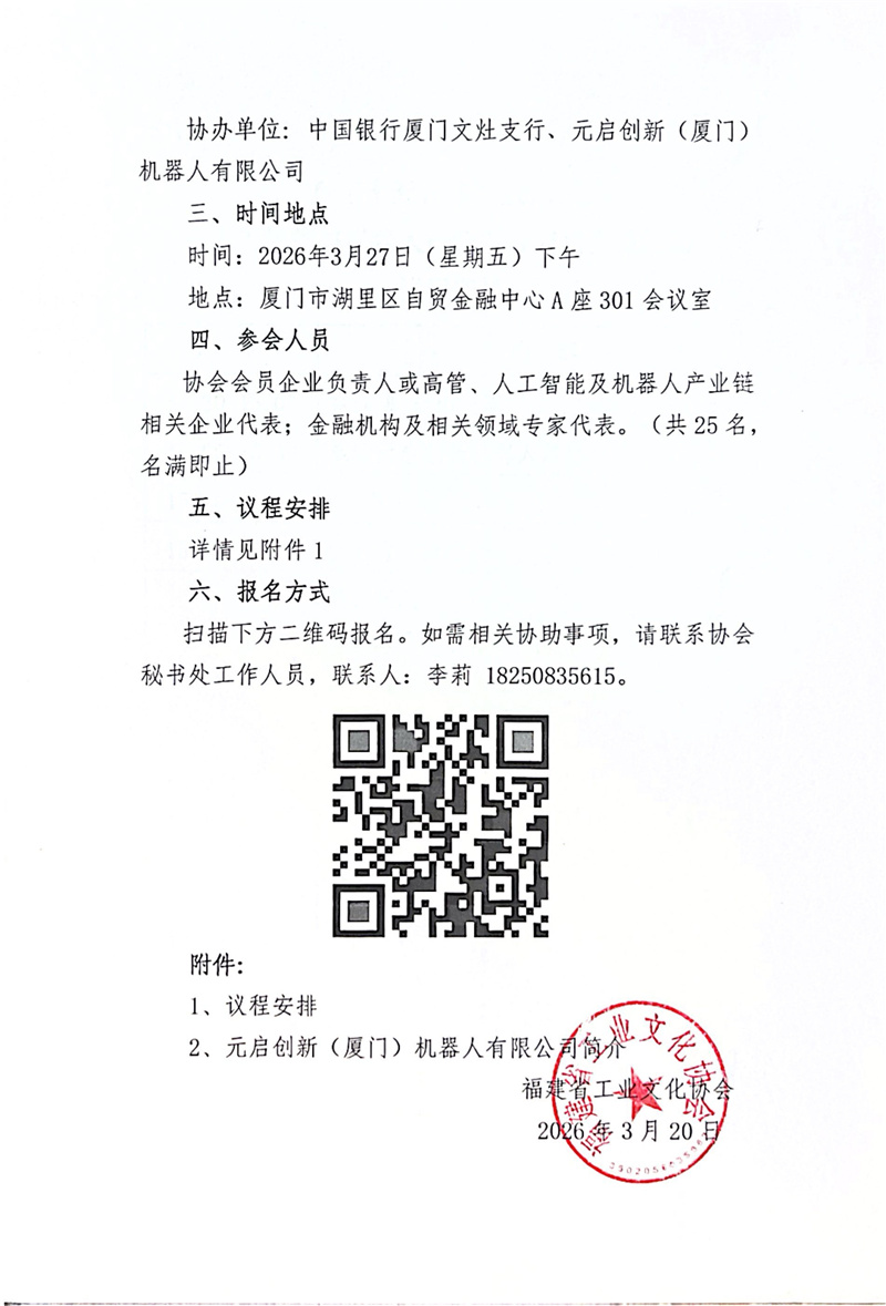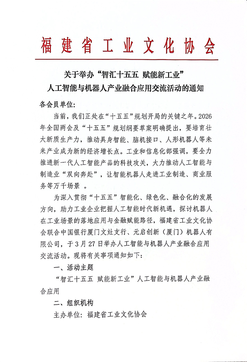 关于举办“智汇十五五 赋能新工业” 人工智能与机器人产业融合应用交流活动的通知